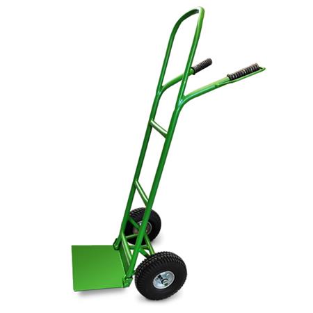 Kétkerekű molnárkocsi magas homlokmagassággal, amely alkalmassá teszi egymásra helyezett ládák, dobozok, vagy magas termékek kényelmes szállítására. A hegesztett és acélcső vázon a lapát felhajtható, így könnyebben szállítható és tárolható. A kiváló minőségű légtömlős kerekek kényelmes mozgatást tesznek lehetővé akár nagyobb küszöbökön való áthaladáskor vagy terepen is.