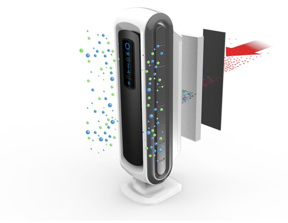 o Az AeraSafe™ antimikrobiális bevonattal ellátott HEPA szűrő biztonságosan eltávolítja a levegőben található részecskék 99,97%-át (0,3 mikron esetén). Így védelmet ad a pollenek, a parlagfű, egyéb allergének, vírusok, baktériumok, poratkák, penészspórák, az állati szőr, valamint a dohányfüsttel szemben